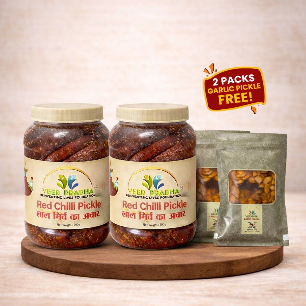 Red Chilli Pickle Pure Natural, Handmade, Maa ke hatho ka Swad 2 Combo Pack 900 + 900 gm